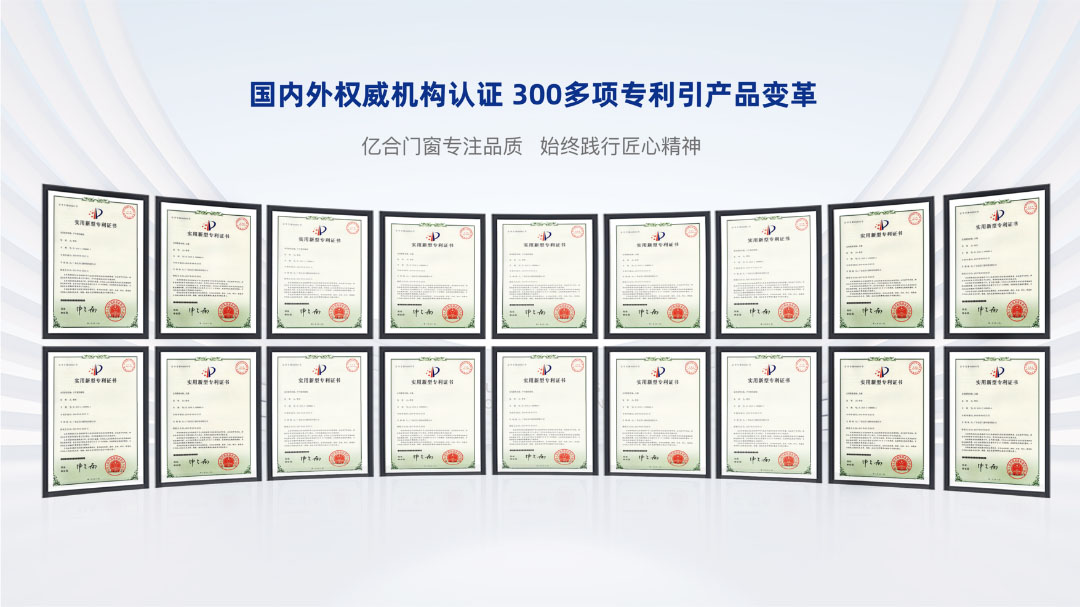 在設計研發方面,億合門窗高度重視自主研發和知識產權管理建設工作,引領行業升級變革。作為“國家高新技術企業”和“國家知識產權優勢企業”,億合門窗堅持每年投入大額資金用作創新研發,進行多元化、高水準的產品研發設計,深度探索門窗在應用領域的發展趨勢和無限可能,截至目前已積累300余項專利,為消費者締造舒適、智能、綠色、健康、安全的美好家居生。