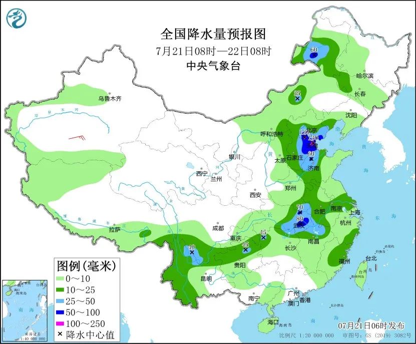 中央氣象臺7月21日06時繼續發布暴雨藍色預警,預計內蒙古東北部、河北東部、北京、天津、山東西北部、河南東南部、湖北東部、江西北部、四川南部等地部分地區有大到暴雨,其中,河北中部、北京東南部、天津南部等地局地有大暴雨。氣象專家提醒,預計未來三天,華北及東北等地多降雨,部分地區累計雨量較大。