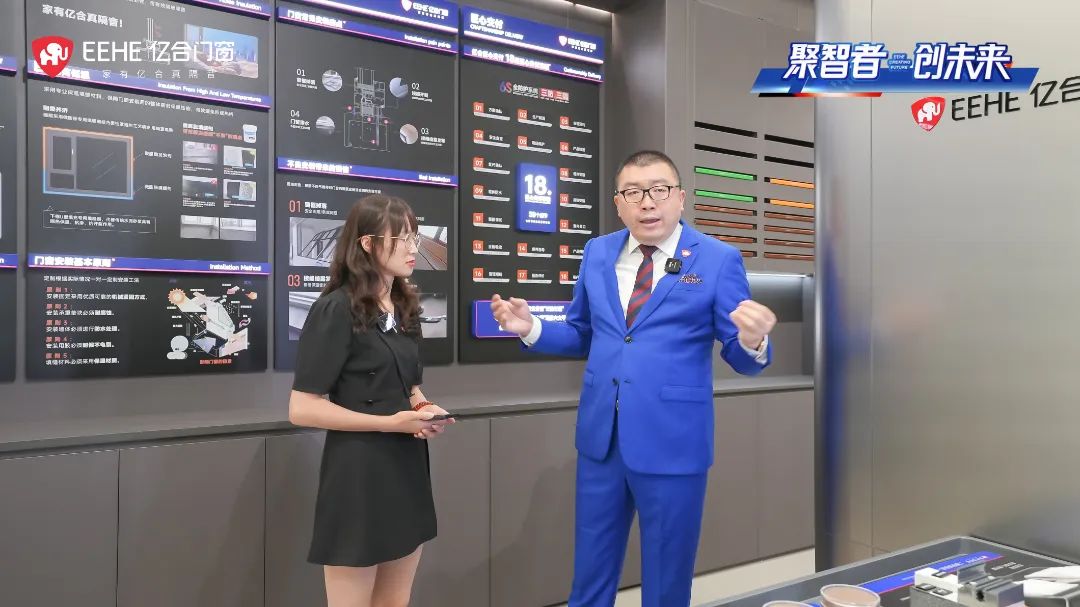直播開始,億合門窗副董事長吳永康親臨直播間與大家互動,向觀眾朋友們深度分析了當前門窗行業的風向與趨勢,并從多方面介紹了億合門窗的企業實力、品牌榮譽、傳播勢能、產品矩陣等優勢。