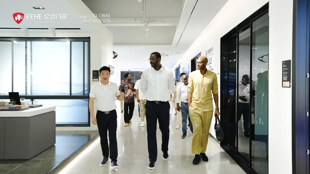 在億合門窗董事長曾奎與外貿團隊的帶領下,非洲商務伙伴參觀了億合門窗的智能制造生產基地和全案體驗館。近距離感受億合門窗從原材料甄選到成品制造的全流程質控體系。每道精益求精的工序,都展現著億合門窗“肩負億萬家庭合家幸?!钡钠放剖姑?。