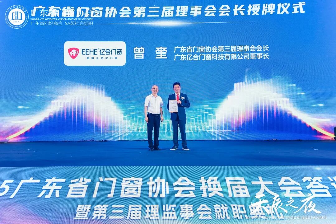 9月9日,由廣東省門窗協(xié)會(huì)主辦的“窗啟新潮?破局共生”2025廣東省門窗協(xié)會(huì)換屆大會(huì)暨好門窗開發(fā)者大會(huì)在佛山萬豪酒店盛大啟幕。億合門窗董事長(zhǎng)曾奎經(jīng)投票選舉再次當(dāng)選,連任廣東省門窗協(xié)會(huì)第三屆理事會(huì)會(huì)長(zhǎng),將帶領(lǐng)協(xié)會(huì)凝聚行業(yè)共識(shí),攜手推動(dòng)廣東門窗產(chǎn)業(yè)實(shí)現(xiàn)高質(zhì)量發(fā)展。
