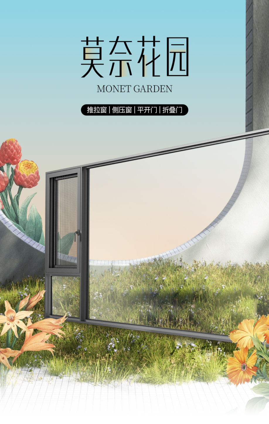 在設計美學層面,「莫奈花園系列」采用極簡主義風格,通過簡約的線條設計與大面積中空玻璃的搭配,最大化拓展室內視野;同時,產品提供多種個性化色彩定制方案,可精準適配不同家居裝修風格,滿足消費者對生活美學的多元追求。
