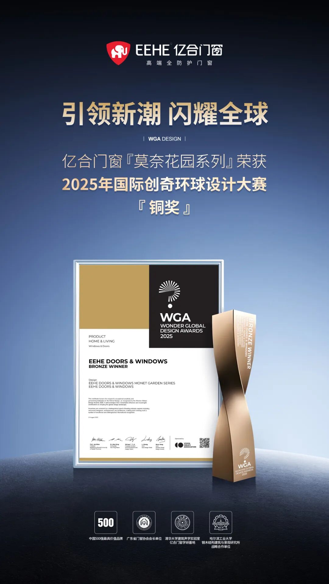 近日,被譽為“全球設計界風向標”的國際創奇環球設計大賽公布了2025年度獲獎名單。在涵蓋建筑、家居、工業設計等多個領域的激烈角逐中,億合門窗「莫奈花園系列」憑借其創新設計和高端品質,榮獲銅獎,且成為本屆大賽中唯一入選并獲獎的門窗品牌,閃耀國際設計舞臺。