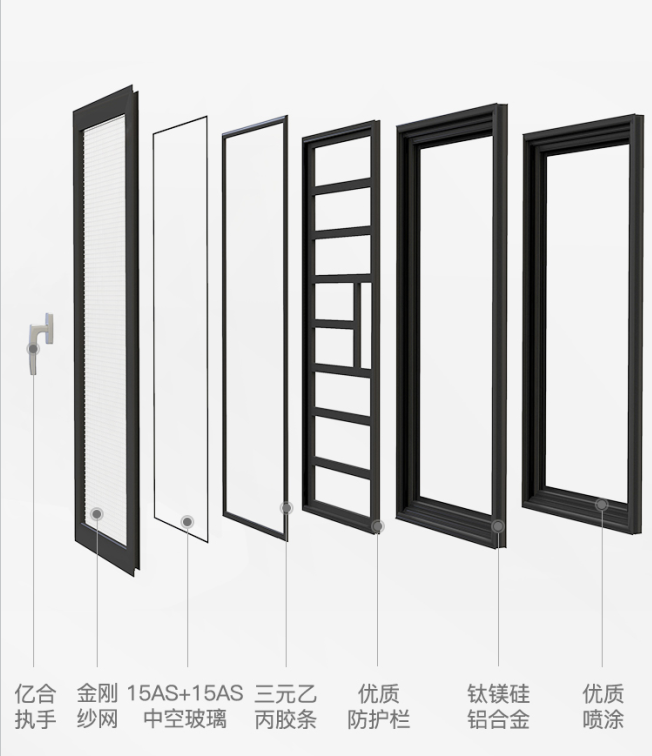鋁型材作為門窗的骨架,厚度與強度直接影響著門窗的使用壽命。億合門窗高配#6063#原生鋁合金,保證門窗具有高抗風壓性能和耐腐蝕性能,不再懼怕風雨侵蝕與時光的痕跡,使用壽命長,守護您的家居安全!