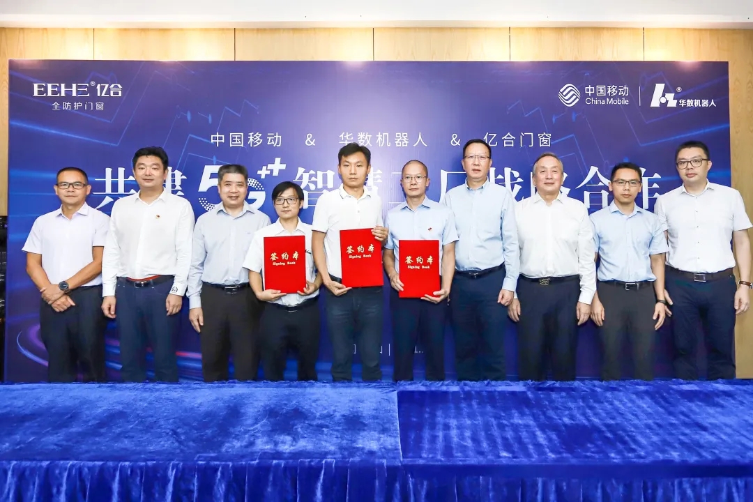 為助力億合門窗打造行業(yè)首個(gè)“5G+智慧工廠”,共同推進(jìn)佛山市5G工業(yè)互聯(lián)網(wǎng)發(fā)展。10月9日下午,廣東億合門窗科技有限公司與中國(guó)移動(dòng)通信集團(tuán)廣東有限公司佛山分公司、佛山華數(shù)機(jī)器人有限公司三方于億合門窗總部簽訂共建5G+工業(yè)互聯(lián)網(wǎng)智慧工廠的協(xié)議。