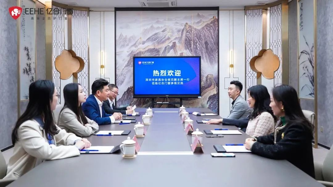 2月28日,深圳市家具行業協會主席侯克鵬,深圳市家具行業協會秘書長洪小惠,深圳時尚家居設計周總監楊子江等一行蒞臨億合門窗參觀交流。廣東省門窗協會會長、億合門窗公司董事長曾奎,廣東省門窗協會執行會長徐召禮,廣東省門窗協會黨支部書記彭思娜等成員熱情接待。
