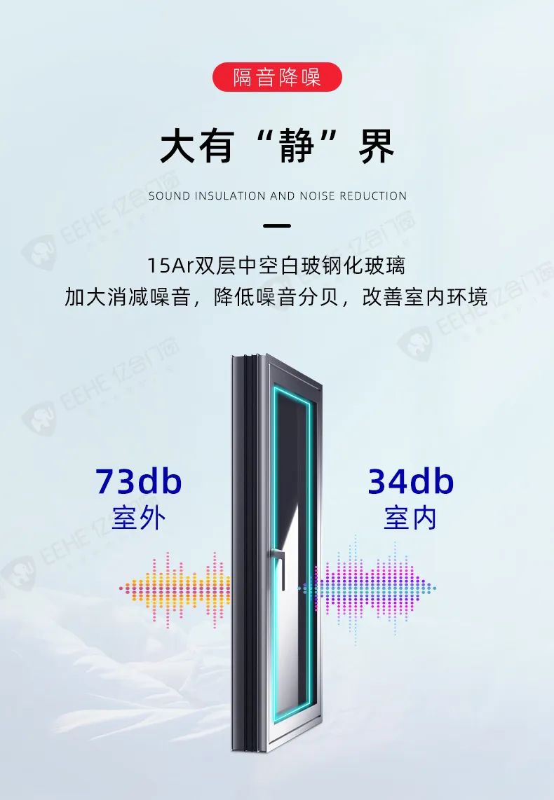 為提高產品的隔音性能,億合高端全防護門窗秉承精益求精的工匠精神,從細微之處出發,采用航空級原生鋁型材,中空玻璃結構,多道密封設計,打造具有優異隔音性能的結構體系,有效阻隔噪音,讓生活回歸寧靜舒適,享受春日好睡眠。