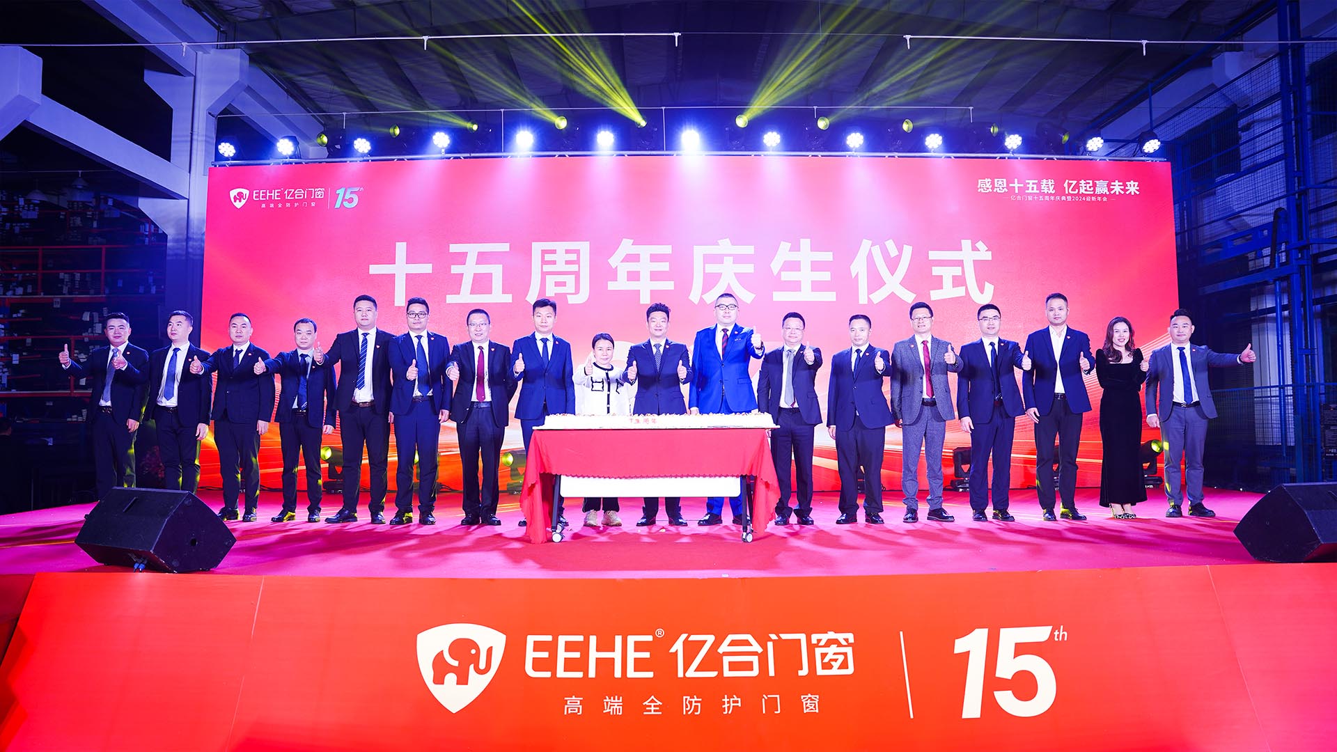 春華秋實,歲月更迭,十五年彈指一揮間,從十余人到上千人,從精耕細作到行業領先,全體億合人奮力拼搏、從不言棄,書寫了“世界門窗 中國億合”的傳奇篇章。在慶祝十五周年環節,億合門窗董事長曾奎夫婦、副董事長吳永康、副董事長胡超、總裁江濤、副總裁李愛民共同切蛋糕慶生,為億合門窗的十五周年送上生日祝福,為億合門窗的未來發展許下美好愿望。