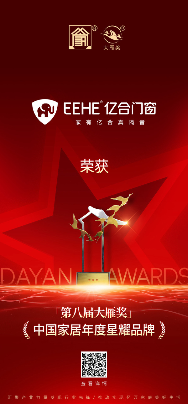 重磅揭曉!億合門窗榮獲「第八屆大雁獎——中國家居年度星耀品牌」獎項稱號