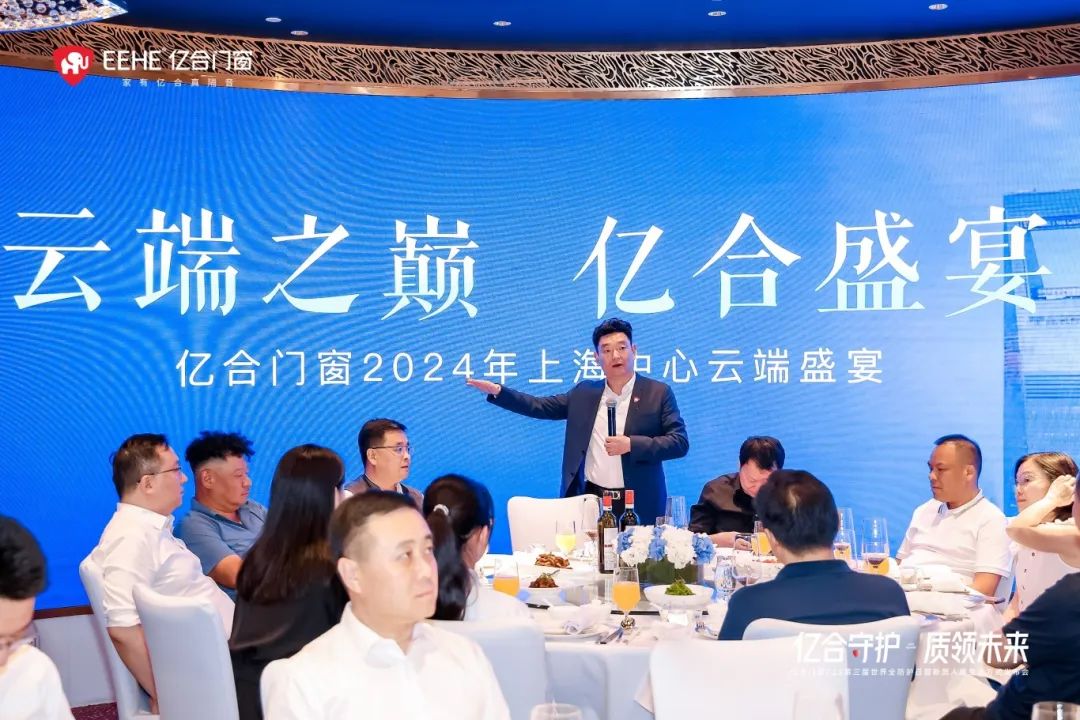 云端高定私宴,共攬魔都勝景。隨著夜幕降臨,賓朋滿座,敘舊傾談,歡樂合影,在此把酒言歡。在光影交錯、衣香鬢影之間,億合門窗董事長曾奎作晚宴致辭,并與億合門窗副董事長吳永康、副董事長胡超、副總裁庫騰等公司核心高管團隊向全體來賓共同祝酒,慶賀本次活動取得圓滿成功,感謝大家的一路陪伴與支持,期待未來繼續與大家攜手并進,砥礪前行,共繪藍圖!