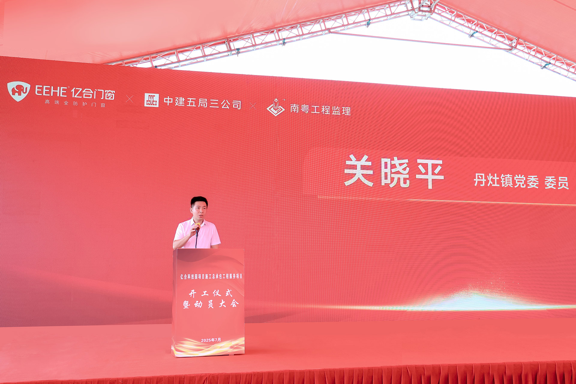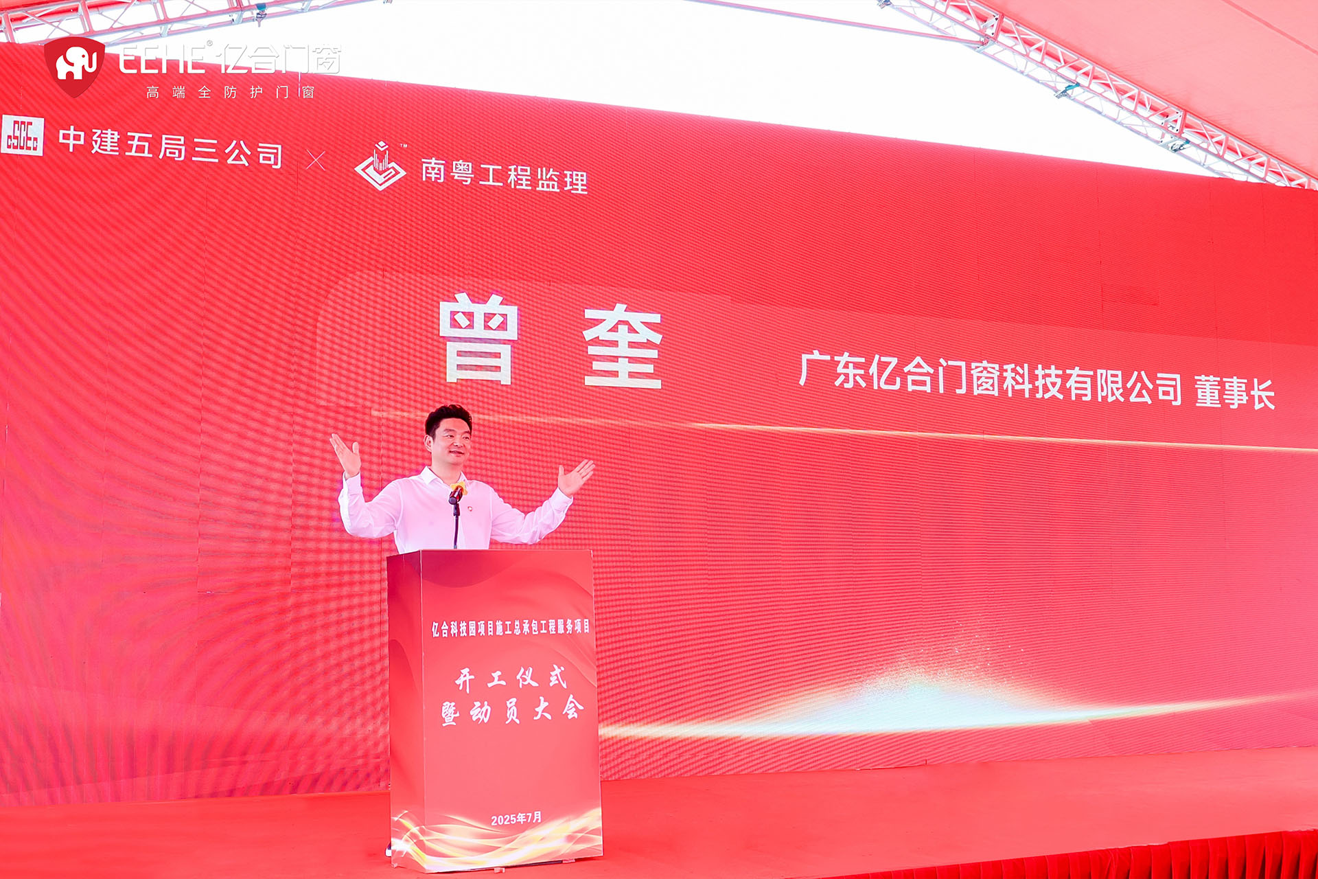 丹灶鎮(zhèn)黨委委員關(guān)曉平在講話中指出,億合科技園施工總承包開工,不僅體現(xiàn)了企業(yè)對丹灶投資環(huán)境的認可,更彰顯了企業(yè)扎根丹灶、長遠發(fā)展的決心,也必將為丹灶智能安全應急產(chǎn)業(yè)、門窗行業(yè)的高質(zhì)量發(fā)展注入新動能。希望億合門窗以建設億合科技園為契機,積極整合行業(yè)大中小企業(yè)資源,帶動產(chǎn)業(yè)鏈上下游企業(yè)集聚入園、協(xié)同發(fā)展;充分發(fā)揮龍頭引領(lǐng)作用,推廣“三防三隔”+“匠心交付”的6+1全防護體系新標準,大力應用綠色節(jié)能新材料、新技術(shù),推動門窗產(chǎn)業(yè)智能化、綠色化轉(zhuǎn)型,引領(lǐng)行業(yè)發(fā)展潮流的同時,也為全鎮(zhèn)建筑外窗工程質(zhì)量提升貢獻更大力量。