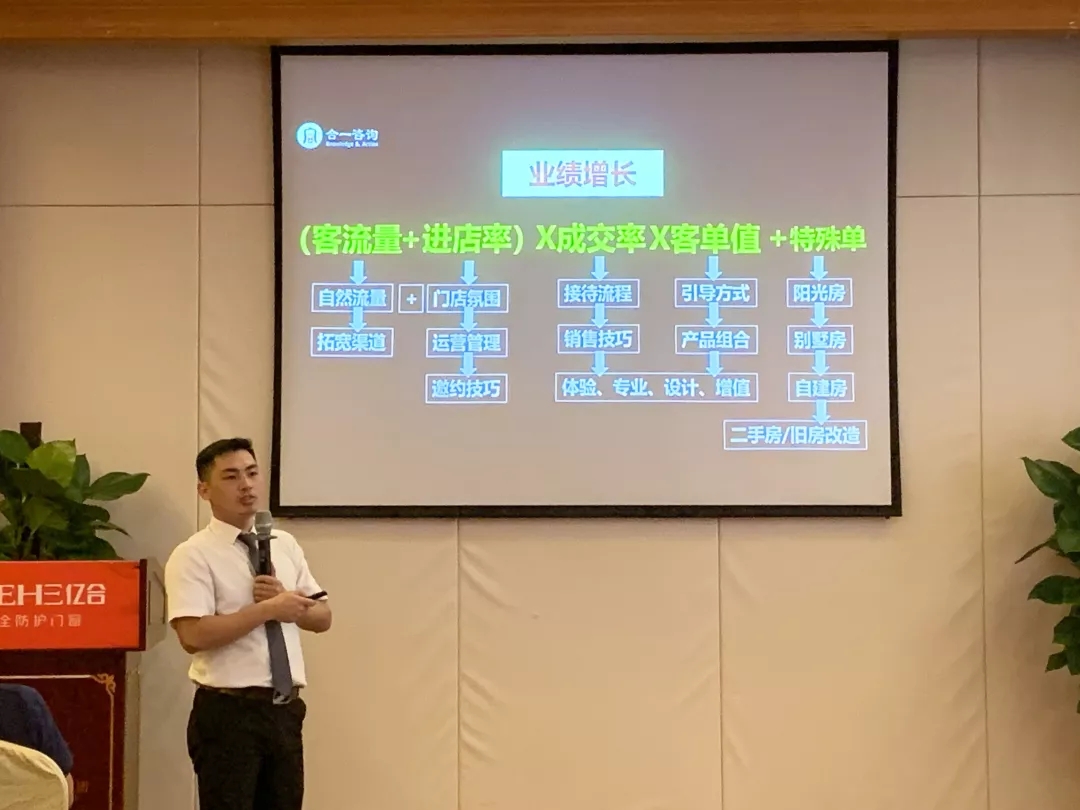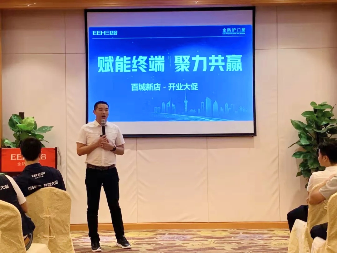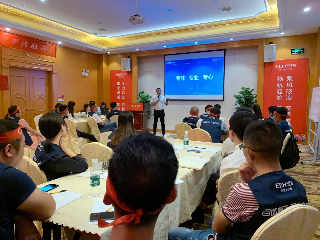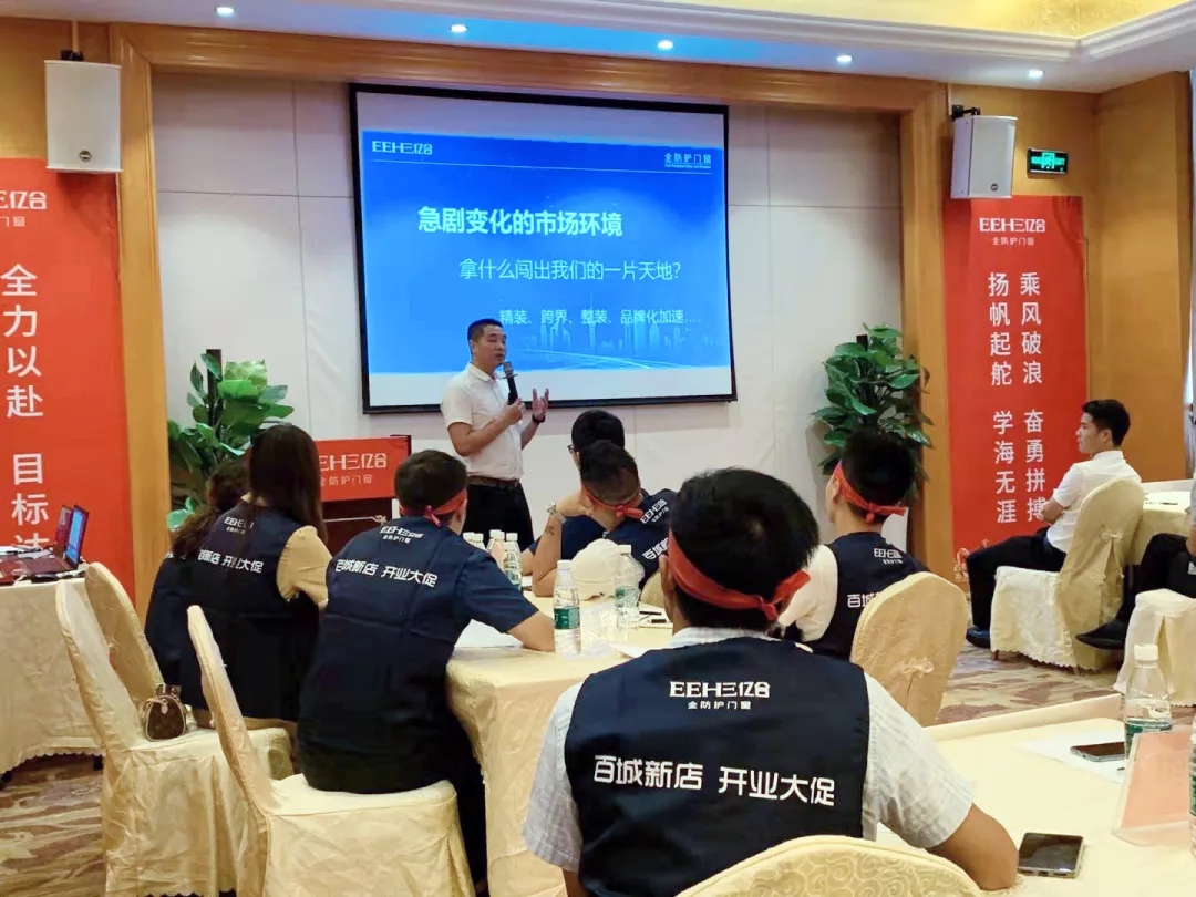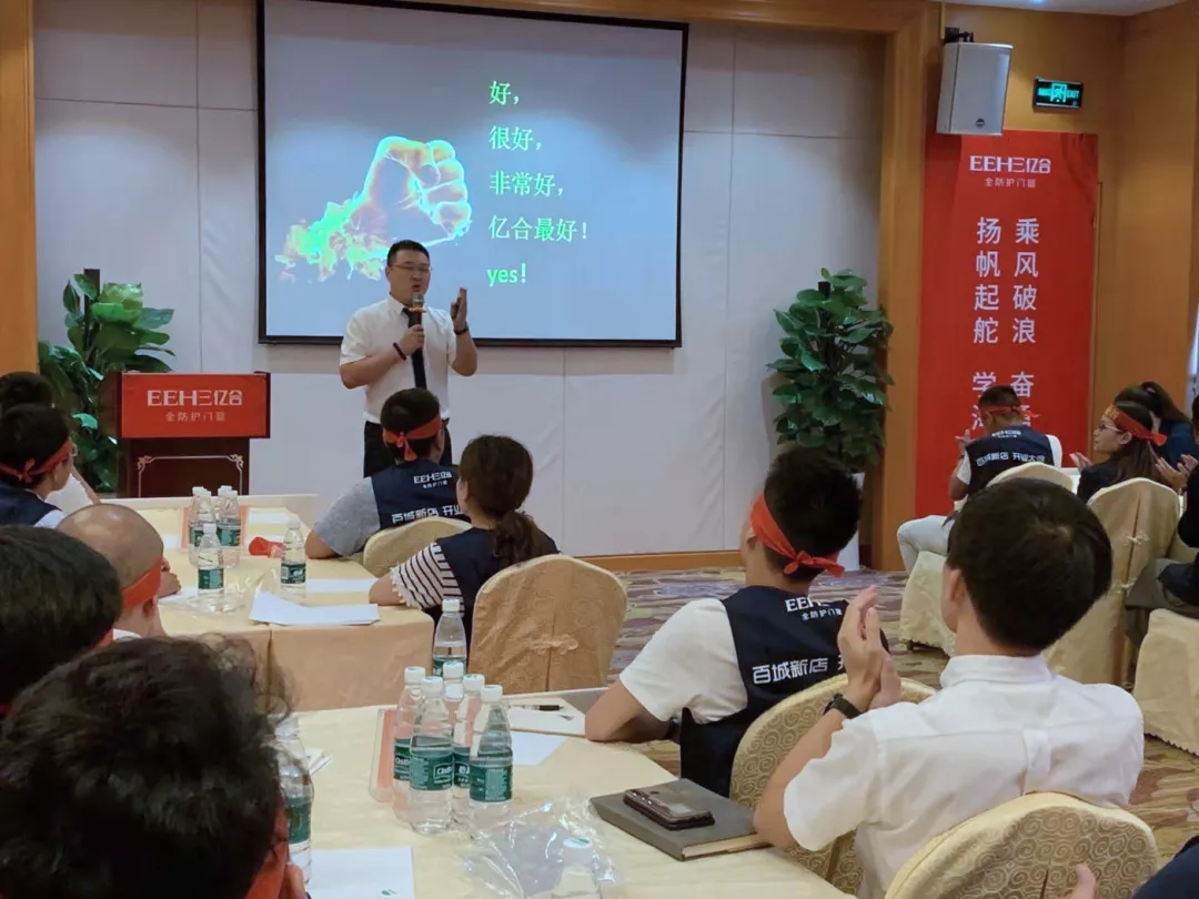 億合門窗國內營銷總監宋海鵬先生首先對各位家人的到來表示熱烈的歡迎,并對現在行業目前的新思想、新格局、新動向進行講解。從店面形象、店面位置、團隊組建、管理方面進行全面的分析。并表示學習力就是競爭力,我們要時刻保持空杯心態。