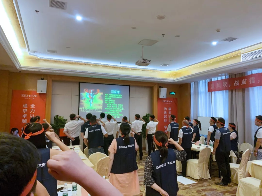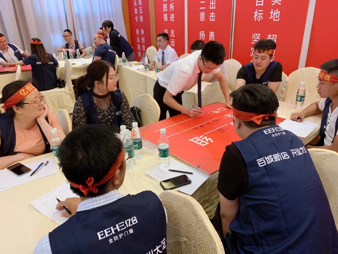此次大會過程中,對品牌進行了團隊建設、營銷培訓以及此次【百城新店·開業大促】活動的詳細講解,組建了五大軍團,各軍團立下軍令狀,勢必在開業大促中大展身手,創造億合門窗又一個傲人成績。