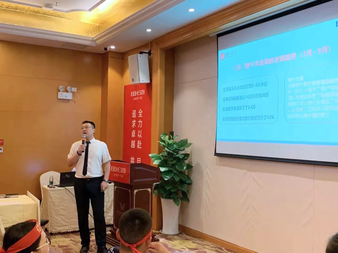 良性的促銷機制是終端經銷商發展升級的助推劑,合一咨詢駐企業營銷總監郭劍老師在大會上講解了本次活動方案及政策,為本次【百城新店·開業大促】活動帶來強有力的支持,為迎戰終端奠定堅實的基礎。