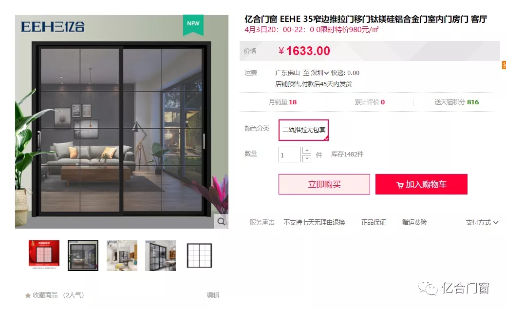 ▲▲直播兩小時,35窄邊推拉門訂單破18單