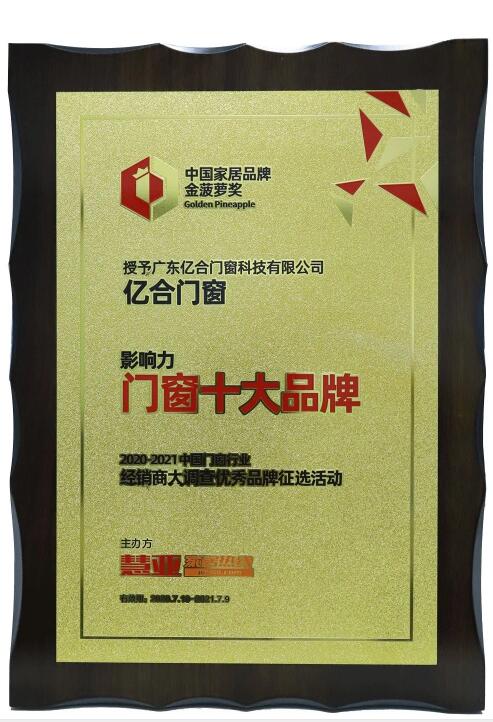 經過群雄逐鹿的激烈競爭,億合門窗在全國各地門窗品牌的角逐中脫穎而出,憑借企業綜合實力、差異化智能產品優勢、良好的市場口碑和強大品牌影響力,一舉摘下“影響力門窗十大品牌”的殊榮。