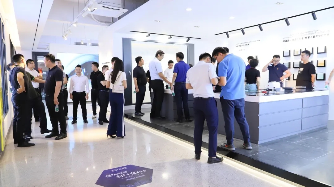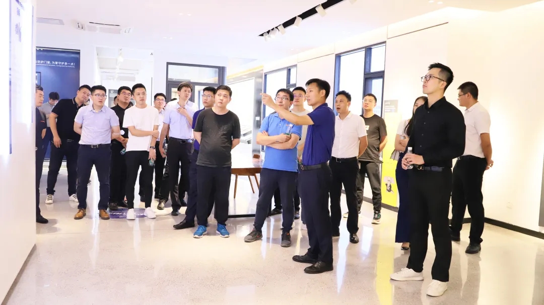 隨后,在胡總等高層領導的陪同下,郭總一行先后參觀了億合科技園園區及新形象展廳。郭總對億合嶄新合理的沉浸式體驗中心的各項智能門窗性能體驗給予了高度評價。