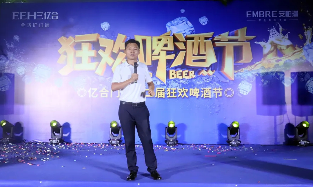 億合門窗總經理胡超為本次“億合啤酒文化節”致辭,胡總表示,本次啤酒節秉承著包容性、文化性、參與性的辦節宗旨,融合了“啤酒、音樂、美食、文化”等多元內容,著力打造以啤酒文化為載體,以提升員工生活福祉為己任的全員狂歡盛宴!