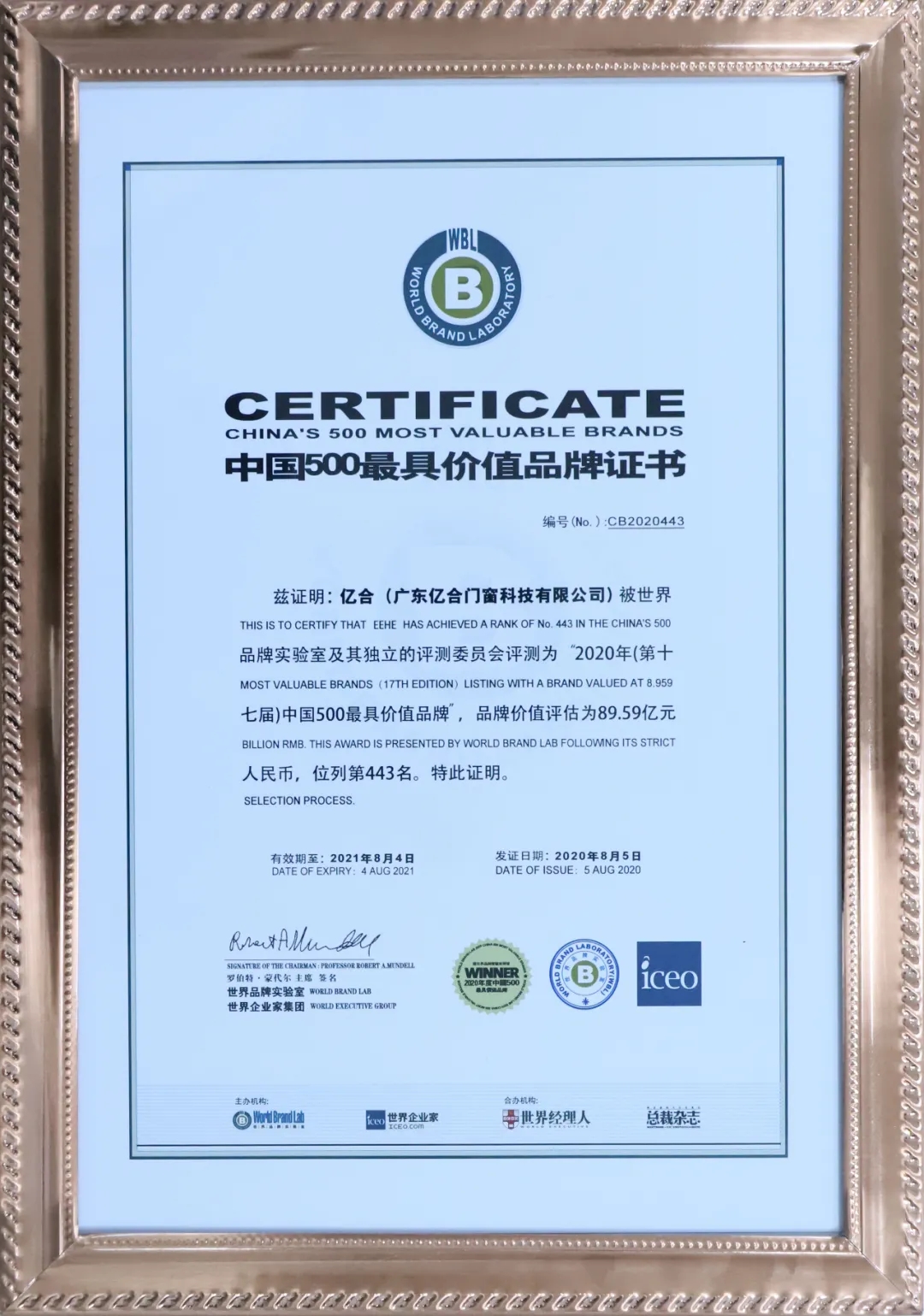 榮譽的桂冠,都是由荊棘紡織而成,通向榮譽的路上,并不是一路坦途和鮮花!在這個飛速發展的年代,原地踏步便等于退步,只有向前沖刺方才有機會獲得成功。億合門窗自成立以來憑借過硬的品質實力,優質的服務意識獲得了絕佳的市場口碑,并且通過不斷創新研發,在行業內率先提出“全防護門窗”新概念,奠定了行業基礎,獲得了許許多多的榮譽。