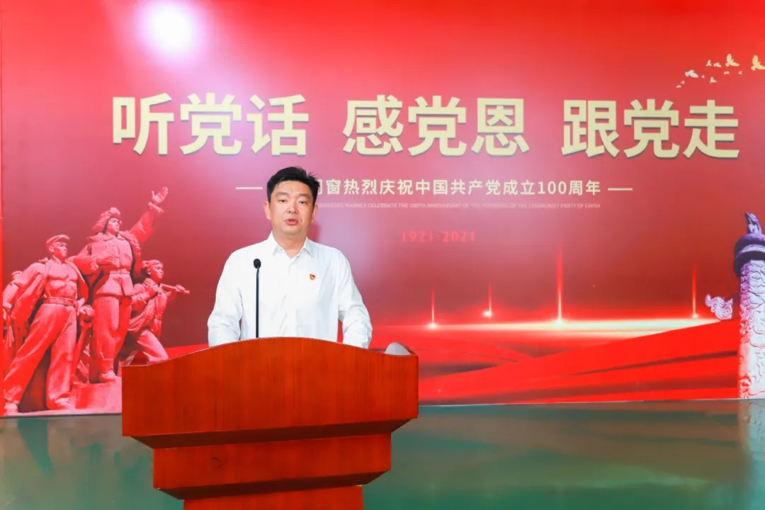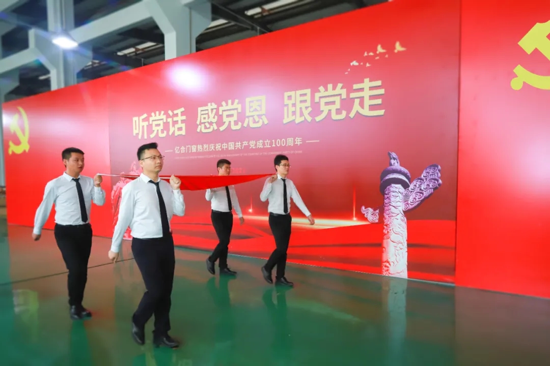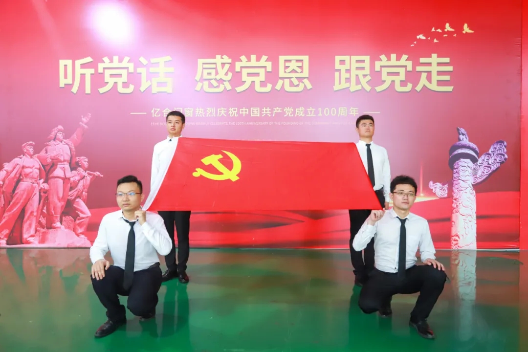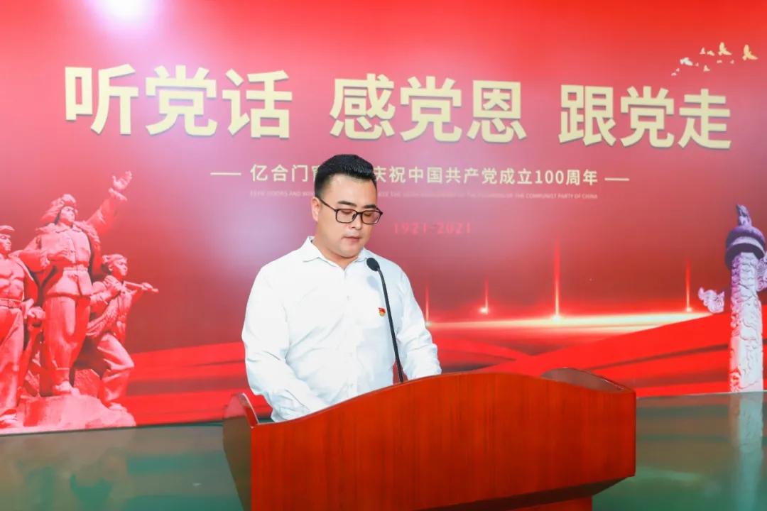 2021年7月1日,在中國共產黨成立100周年之際,在“兩個一百年”奮斗目標歷史交匯的關鍵節點。億合門窗總部隆重舉行了“聽黨話,感黨恩,跟黨走”系列活動。中共億合門窗支部委員會書記、億合門窗董事長曾奎同志做主題講話,楊翔同志代表黨員發言,慶典活動由中共黨員、億合門窗總經理胡超同志主持。19名中共黨員、1500名職工參加慶典活動,共同祝福偉大的黨生日快樂!