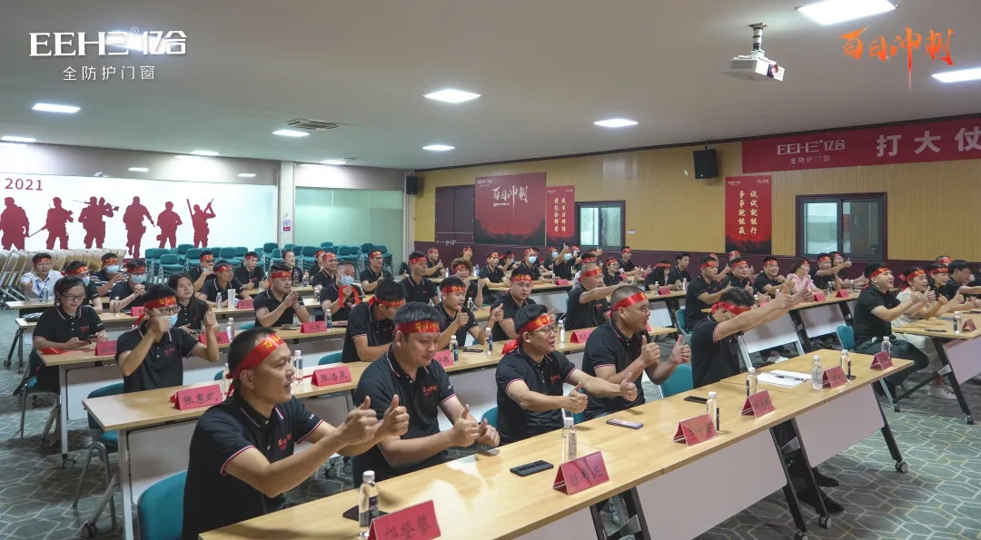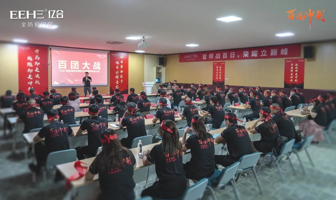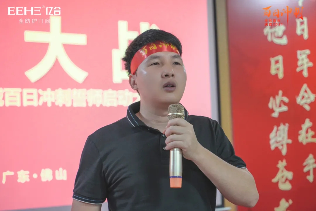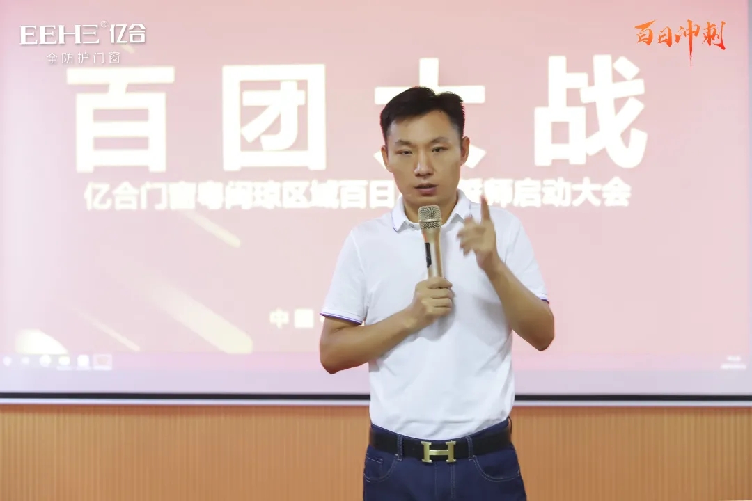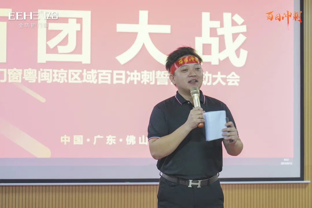 百日競渡,破浪展雄風。面對激烈的市場競爭環境,如何快速突出重圍,打贏這場百日戰役,精準的策略、堅決地執行是勝利的關鍵。9月13日,億合門窗總部隆重召開了粵閩瓊區域百日沖刺誓師啟動大會,億合門窗總經理胡超、營銷中心副總經理劉科特等領導及粵閩瓊區域經銷商共同出席會議。