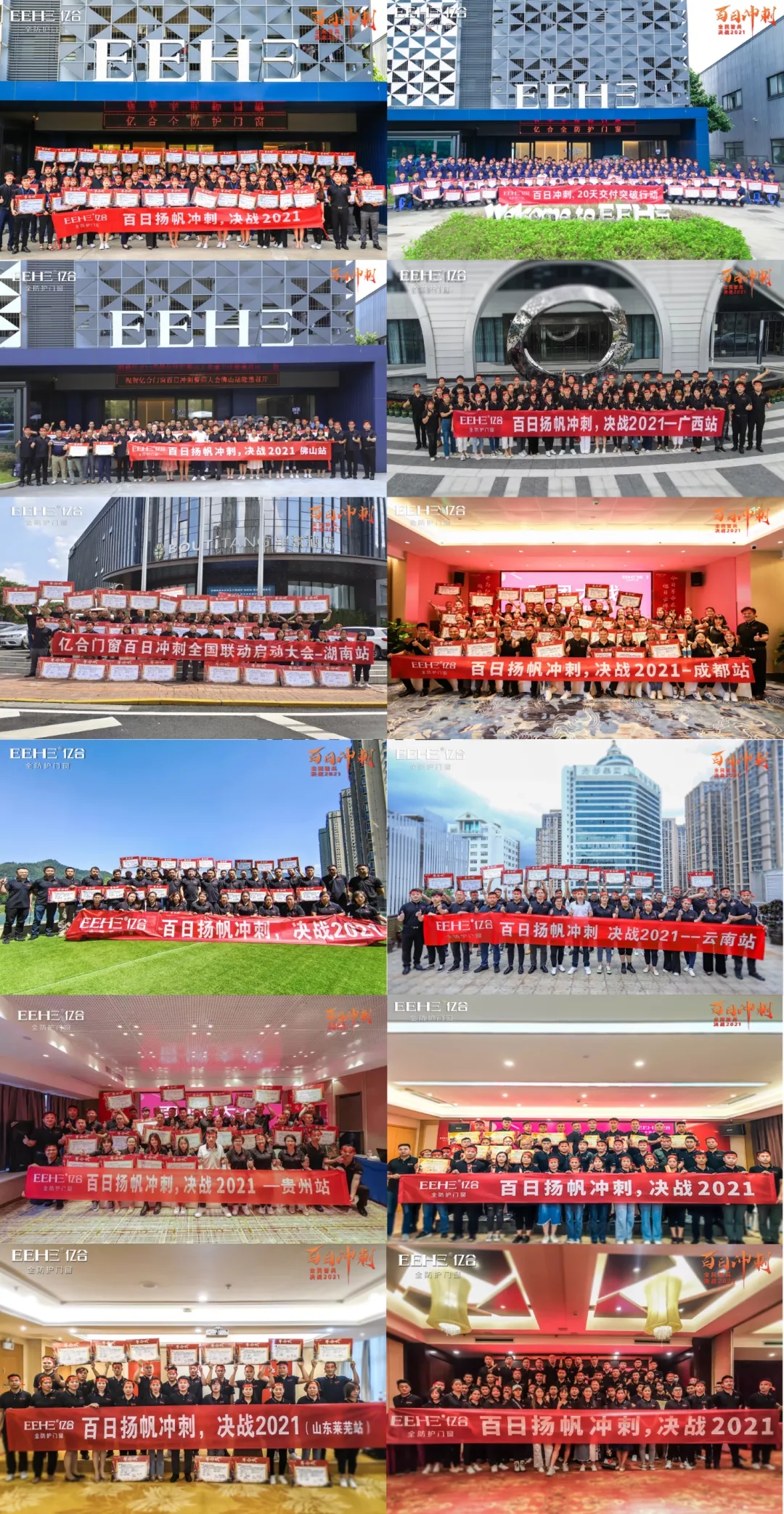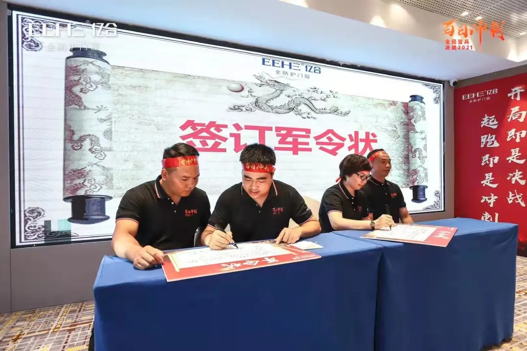 雷霆炮鐵流滾滾震沙場,神劍舞將士戈壁磨利劍。9月13-18日,億合門窗總經理胡超、副總經理劉科特親自帶領公司營銷團隊和全國經銷商,在全國十大戰區吹響“百日沖刺,決戰2021”沖鋒號,堅決打贏百日沖刺攻堅戰。