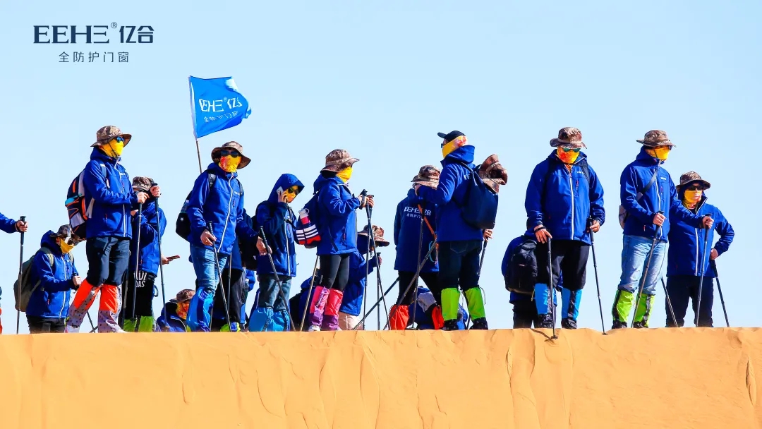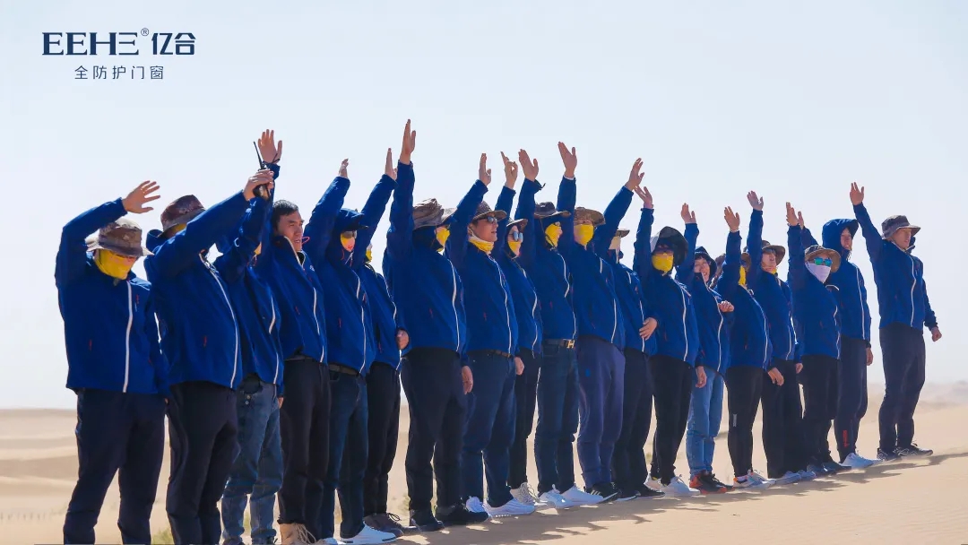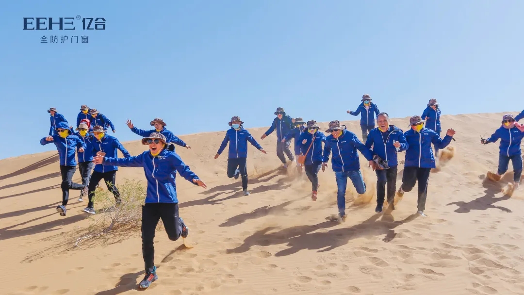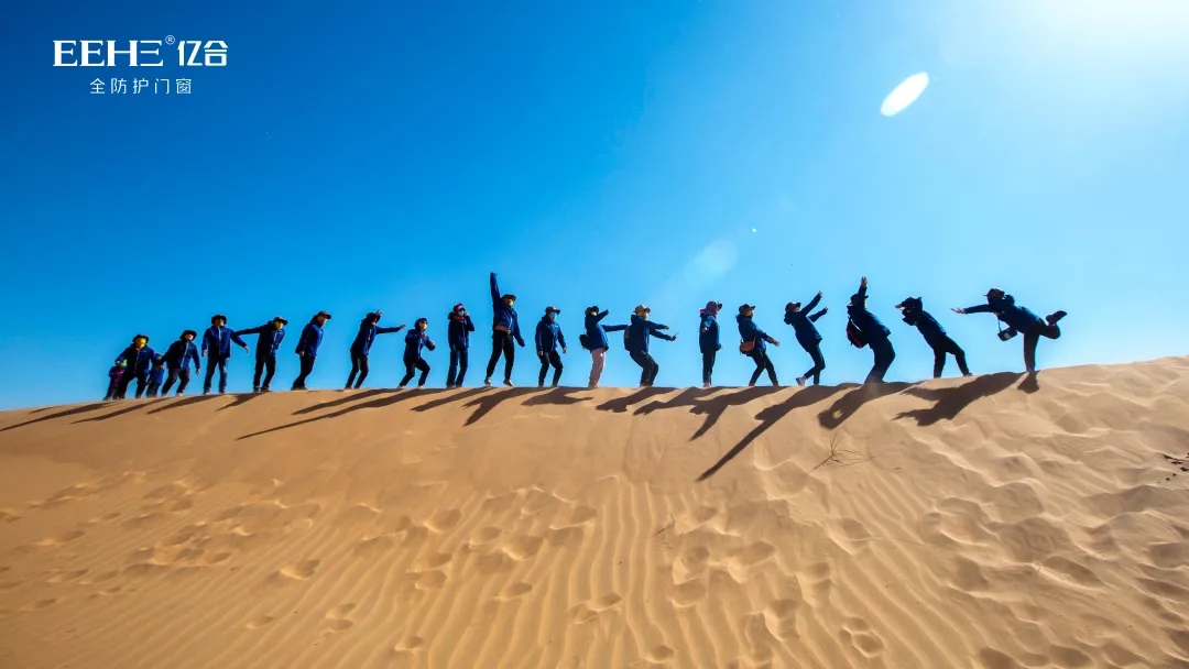徒步過程中,一陣陣風沙撲面而來,加上松軟的沙粒和強烈的陽光,舉步維艱,但是大家堅持不懈、凝心聚力的精神一直支撐到終點,沙子里印滿了大家堅定的腳步!正如億合門窗一步一個腳印地向前邁進,這是一場艱苦卓絕的“長征”,歷經的困難遠遠超越徒步沙漠。即便如此,億合家人們總是能夠保持一種樂觀、堅不可摧的精神,越挫越勇,淬火成鋼。