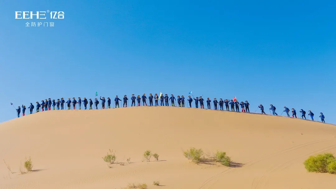 阿拉善,既有著震撼人心的風景,也有著令人生畏的黃沙,無時不刻考驗著人的耐力和意志力。重溫紅軍精神,再尋初心使命,億合門窗董事長曾奎帶領著億合經銷商家人們,踏上了一望無際的沙漠。莊嚴宣誓集結出發,開啟了徒步沙漠50公里的挑戰。