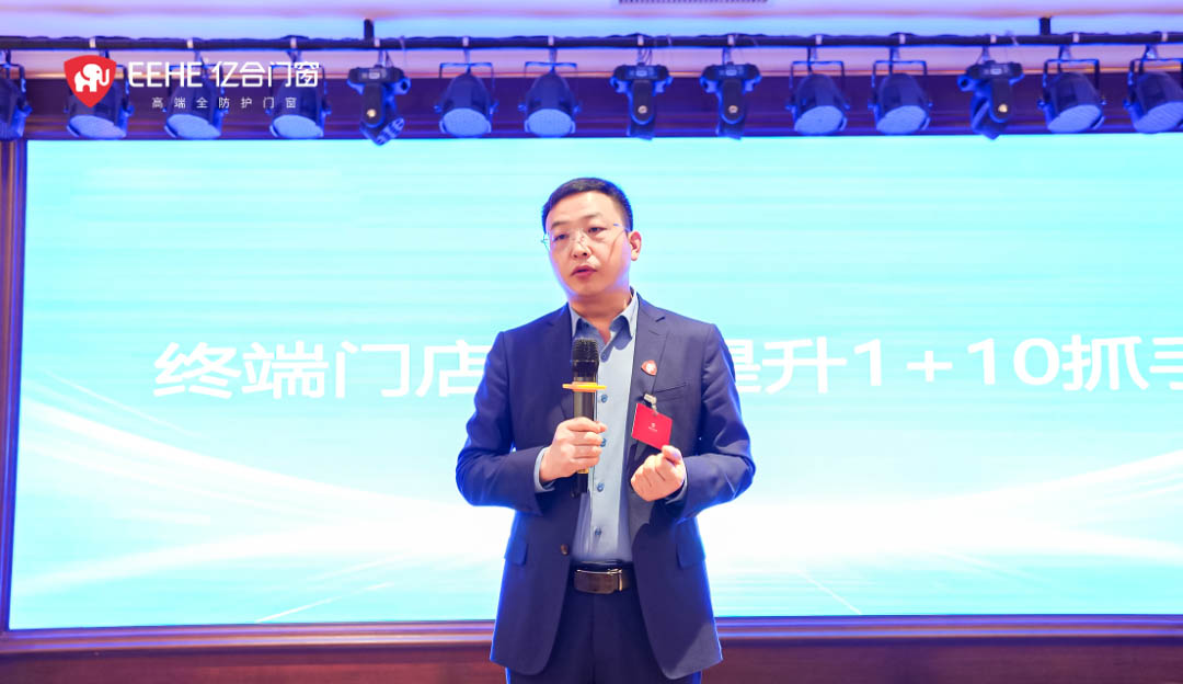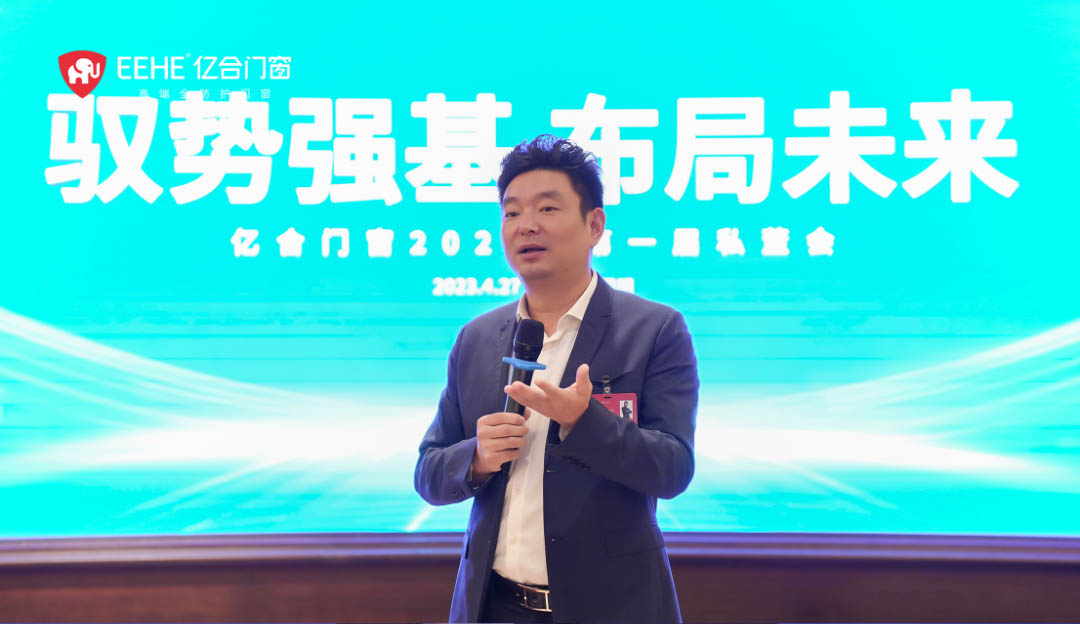 立宏觀之巔,謀發展之勢。在《破解終端門店運營困境》的主題演講中,億合門窗董事長曾奎結合了經銷商遇到的經營瓶頸與困境,進行深度剖析,給予解決方向與建議,幫助經銷商打破思維壁壘,走出個體視角,激發終端活力。曾董事長提出,廣闊的市場前景為行業帶來了同步增長的壓力,入局品牌增多、競爭強度加劇、洗牌再次加速。面對如此局面,只有將品牌化思維注入終端市場,正確把握門窗賽道走勢,找準著力點,選準突破點,在品牌建設上再發力,刷新終端形象在消費者心目中的認知,我們才能破局新生,全體億合家人要齊心全面進攻,定能攜手打造全新的行業傳奇。