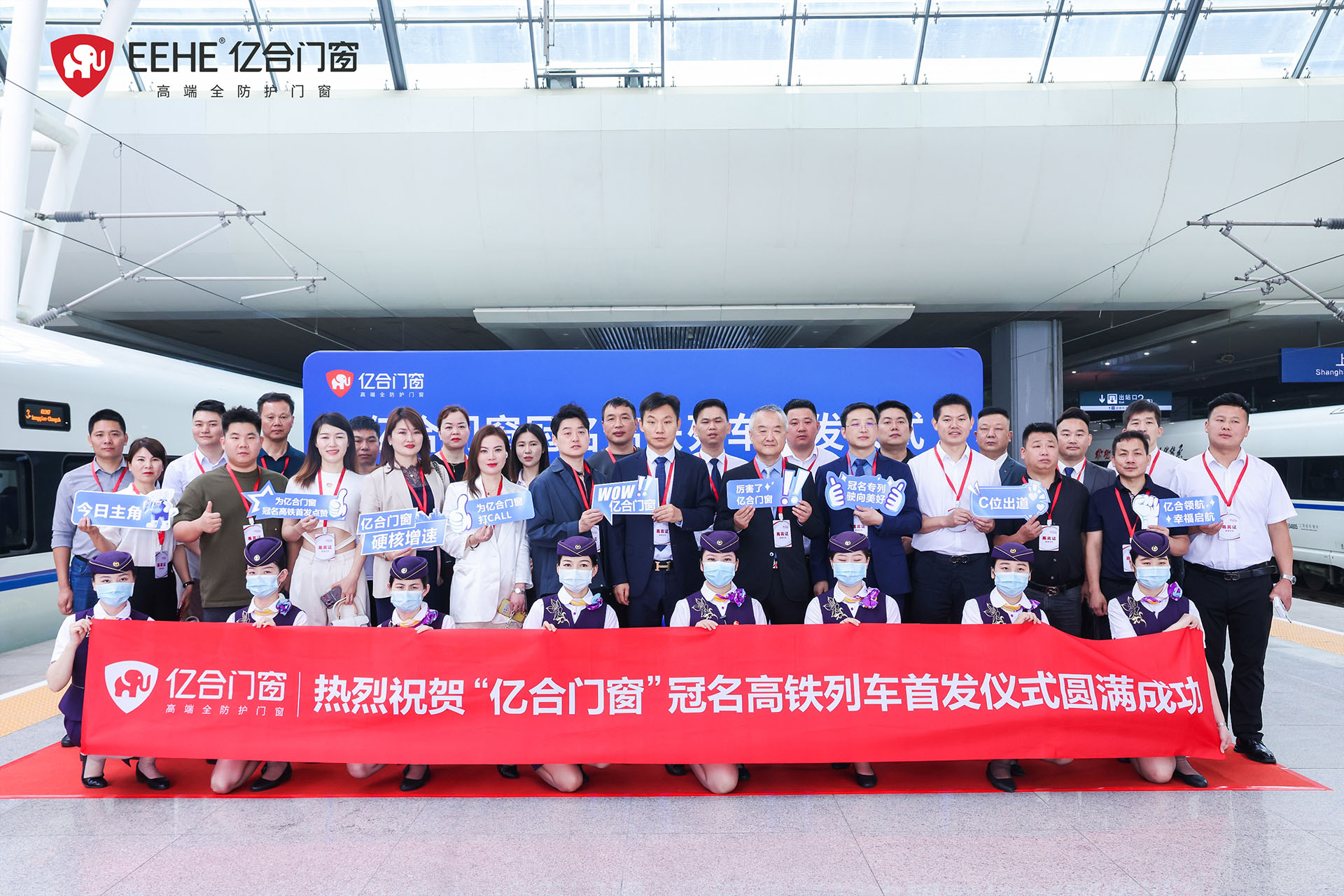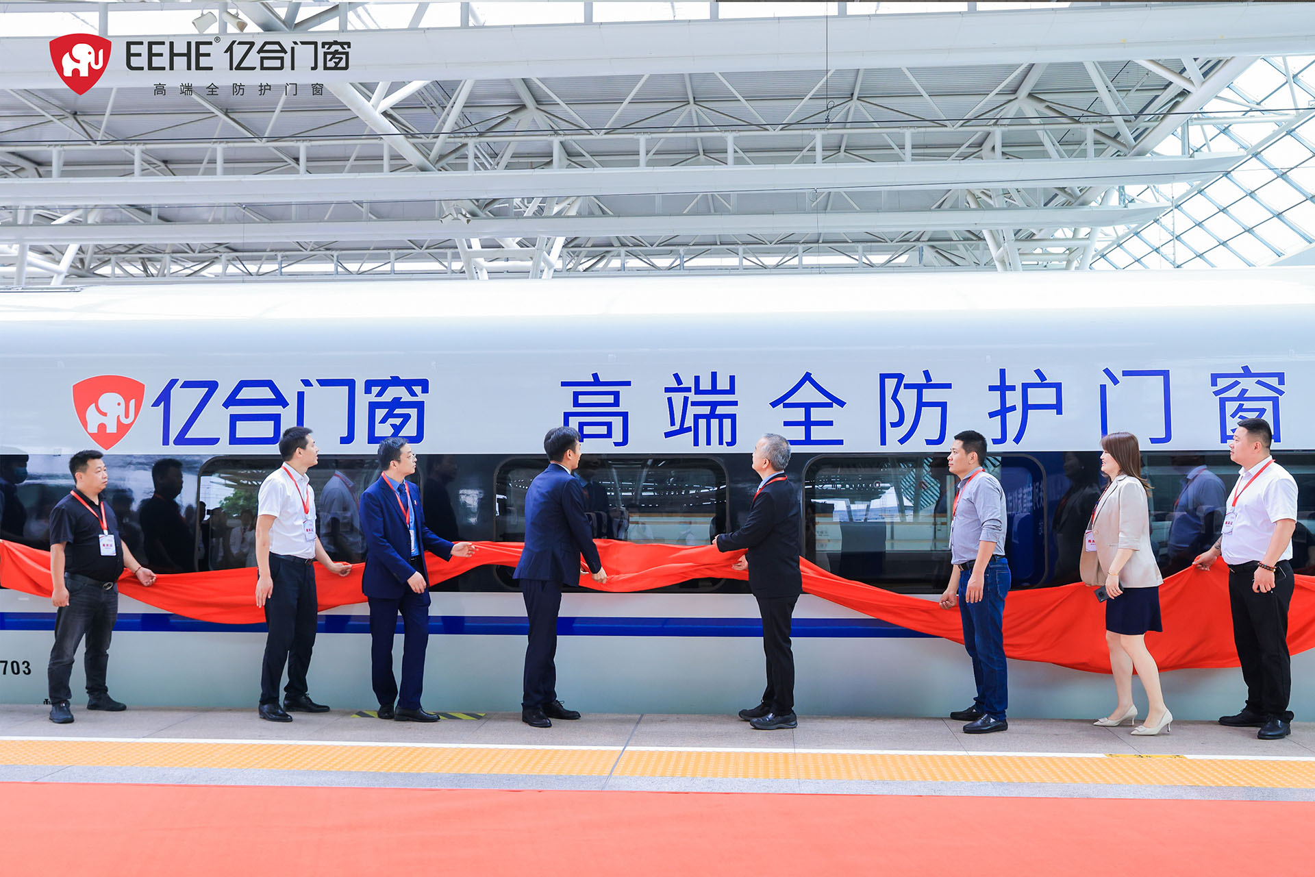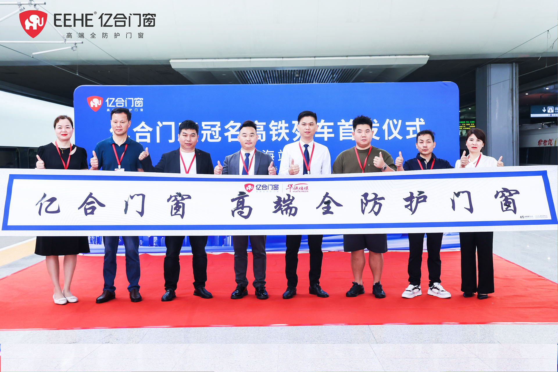 6月7日,億合門窗冠名高鐵列車(上海局)首發儀式在虹橋站隆重舉行。廣東億合門窗科技有限公司總經理胡超、渠道中心總監王喜坤、華鐵傳媒集團有限公司高級副總裁杜勁松等一行領導蒞臨現場,與眾多億合門窗江浙滬皖地區經銷商代表及來自全國各地的旅客們共同見證了億合門窗冠名高鐵列車的盛大啟程!