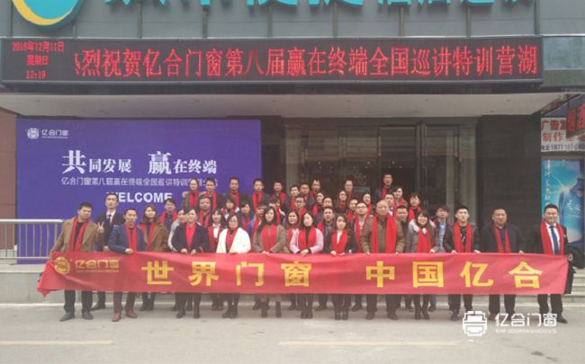 為幫助全國億合門窗加盟代理戰略合作伙伴更好、更快成長,2016年12月11日--12日,為期兩天的《億合門窗贏在終端全國巡講特訓營》在湖北武漢隆重舉行。湖北區域各門窗加盟代理旗艦店、專賣店老板、店長及銷售精英共同參與此次為期兩天的培訓活動!