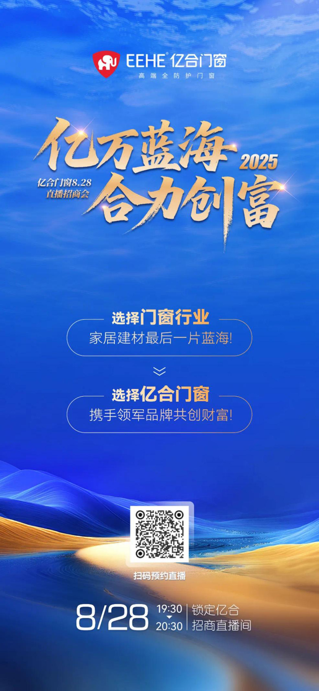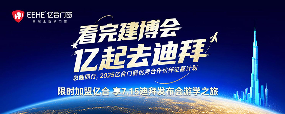 7月炎夏,當90%的家居建材品牌在廣州開啟搶商大戰時,有個頭部門窗品牌卻發起了 “看完建博會 億起去迪拜” 的 “另類招商活動” :限時加盟億合門窗,就能跟億合董事長和優秀經銷商一起去迪拜,見證中國門窗首場全球品牌發布會,并實地考察中東門窗市場。