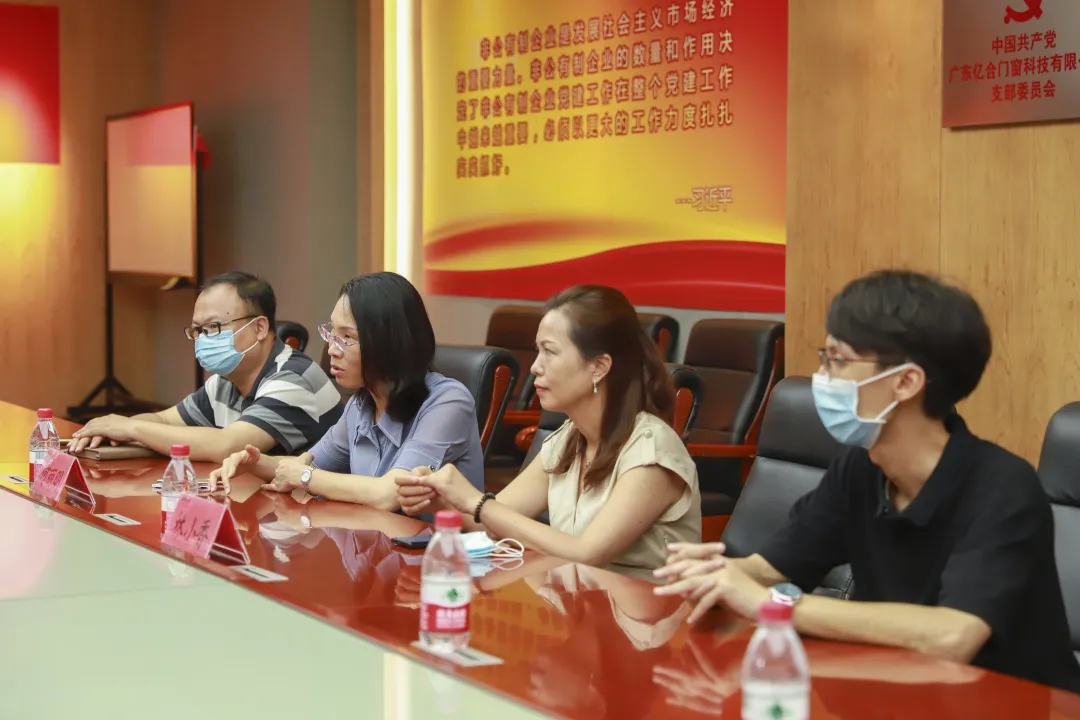 為了進一步關心員工身心健康,幫助他們緩解壓力,以更加健康、陽光的狀態投入工作。8月18日,獅山鎮總工會主席何麗明,副主席林小香,副主席程鵬一行蒞臨億合門窗參觀指導,億合門窗總經理胡超攜億合工會核心成員熱情接待。此次參觀交流旨在進一步推動企業關愛員工,引導員工熱愛企業,最終實現員工與企業和諧共贏。