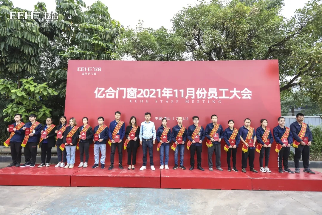 嶺南的十一月,風輕云淡,陽光正好。11月1日上午,億合門窗2021年11月份全體員工大會在公司新生產基地隆重召開,公司總經理胡超,副總經理郭遠志、甘孝東、朱大均等主要領導攜全體員工1500余人共同出席大會。
