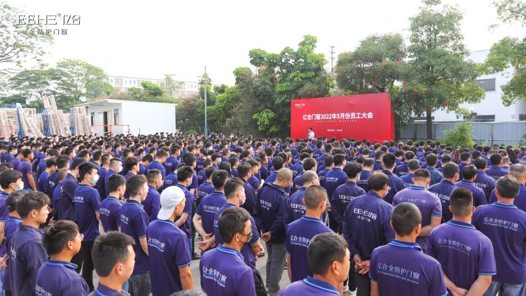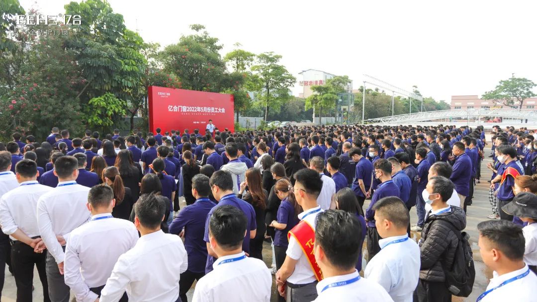 五月陽光和煦,暉映繁花繽紛。5月4日上午,億合門窗5月份全體員工大會在公司新擴(kuò)建的生產(chǎn)基地隆重召開,公司總經(jīng)理胡超攜全體員工1500余人共同出席了本次大會。
