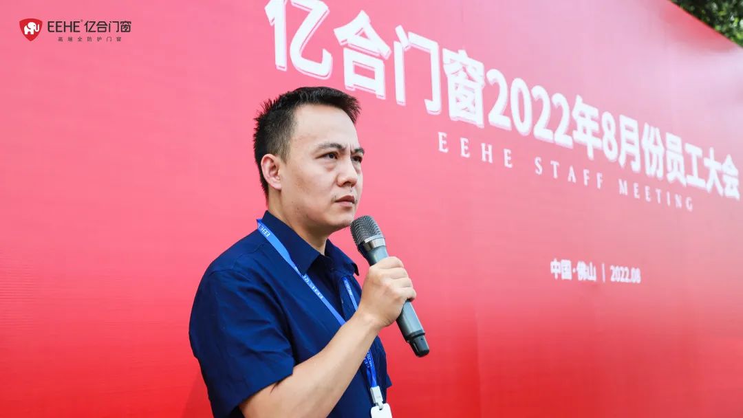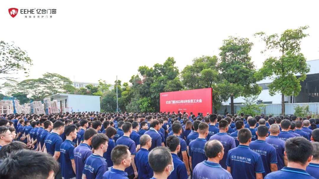 炎炎夏日,向陽盛開。億合門窗8月份全體員工大會在公司新擴建的生產基地隆重召開,公司總經理胡超攜全體員工1500余人共同出席了本次大會。