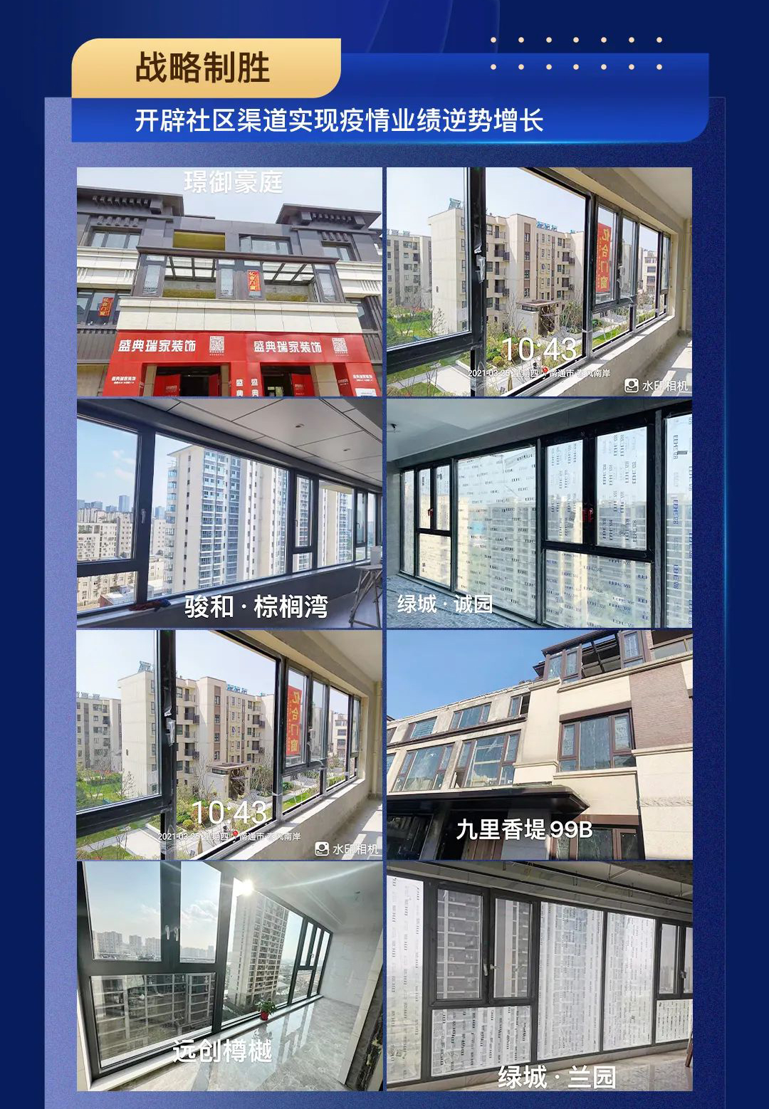 南通店緊跟市場變化,布局社區渠道,與當地各大開發商、物業建立長久合作關系,成為政府及物業協會共同舉辦的全市物業技能大賽總冠名商。通過深化業主團購、社群營銷、樣板房引客等銷售模式,以質帶量,在疫情期間奮力突圍,實現業績增長,打造絕對口碑與品牌優勢,成為南通市場中當之無愧的門窗首選品牌。