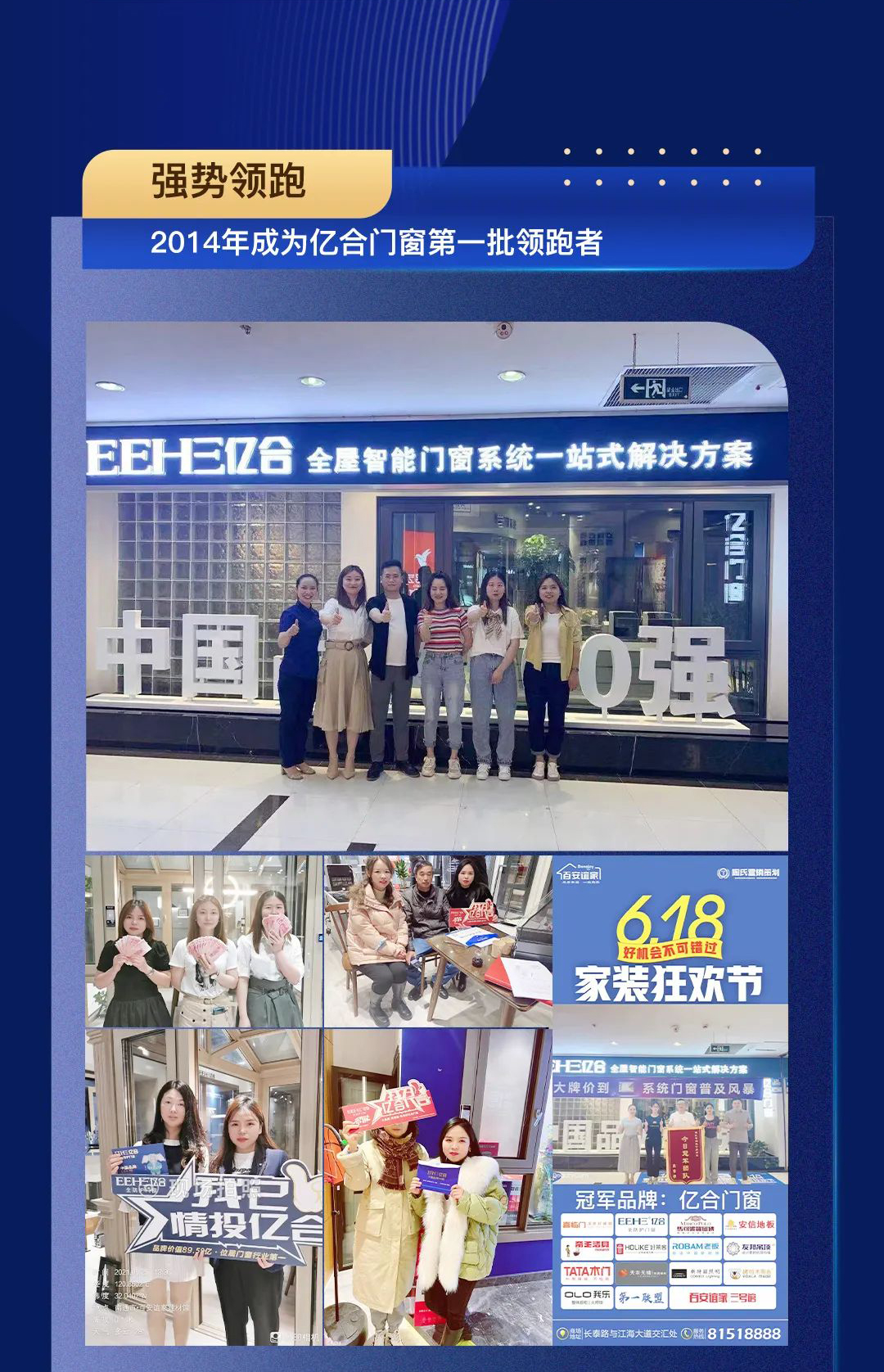 26年家居建材創業經驗,陳本龍瞄準市場細分領域的經營契機,選擇加盟億合門窗,與品牌共生共榮,一路見證億合門窗發展壯大。以“服務至上”為宗旨,不斷強塑南通門窗市場,在客戶新房因疫情斷續停工的情況下,持續為其服務3年,以星級服務打動客戶,贏得口碑與市場!